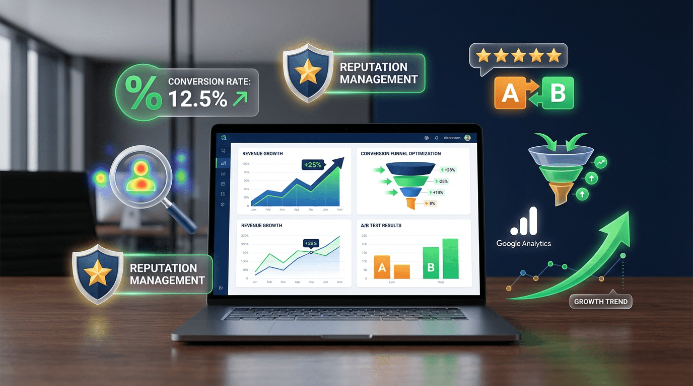 Growth & Optimization fixes all of that. Works perfectly with SEO, Google Ads, and website development.